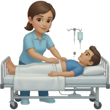 The masseuse performs an abdominal massage on the bed. emoji