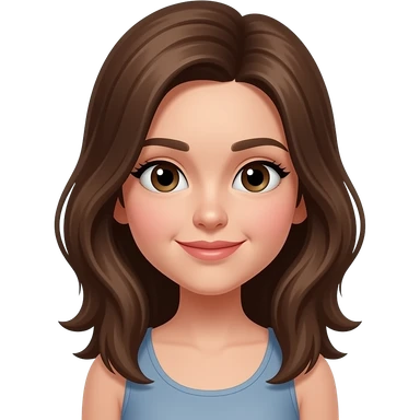 Girl wearing a light pink tank top applying blush with brush smiling emoji