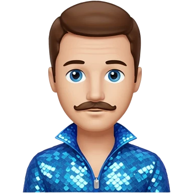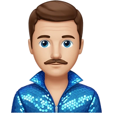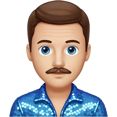 Benson Boone (b.2002), Pop Singer with blue eyes, brown medium hair and thin mustache, icy blue sequin outfit emoji