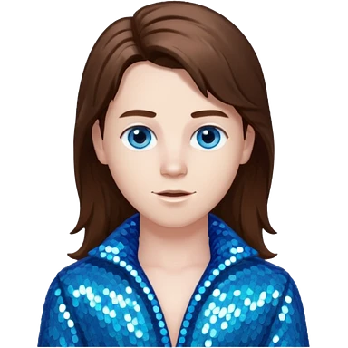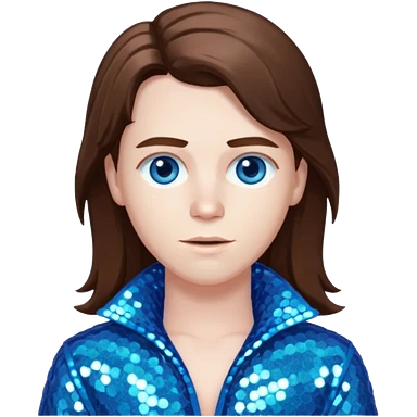 Benson Boone (b.2002), Pop Singer with blue eyes, long brown hair, icy blue sequin outfit emoji