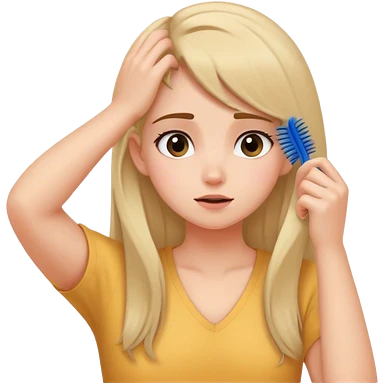 Emoji pretending to brush hair behind ears, like shy girl emoji