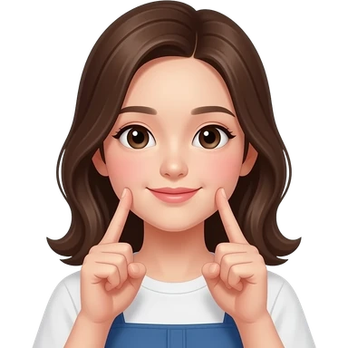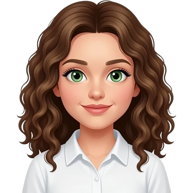 Girl with white skin, and curly brown hair and green eyes with lashes wearing a white shirt emoji