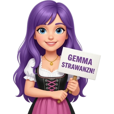 girl with long purple hair wearing a dirndl holding a GEMMA STRAWANZN! sign emoji