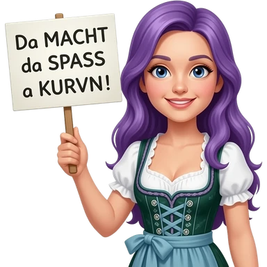 girl with long purple hair wearing a dirndl holding a Da MACHT da SPASS a KURVN! sign emoji