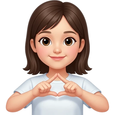 Girl pinching pointer and thumb together but turning each a bit diagonally to make a Korean finger heart emoji