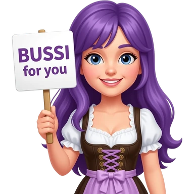 girl with long purple hair wearing a dirndl holding a BUSSI for you sign emoji