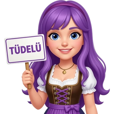 girl with long purple hair wearing a dirndl holding a * TÜDELÜ * sign emoji