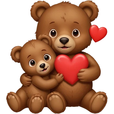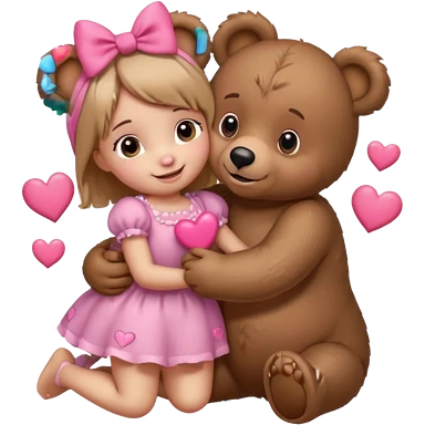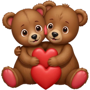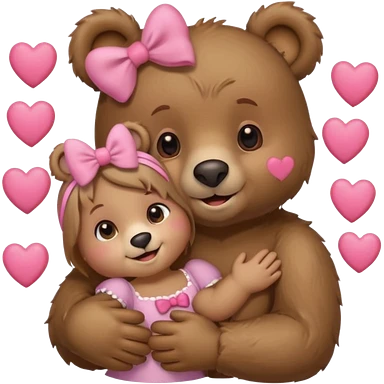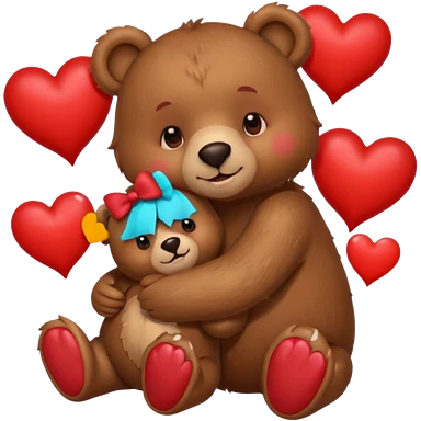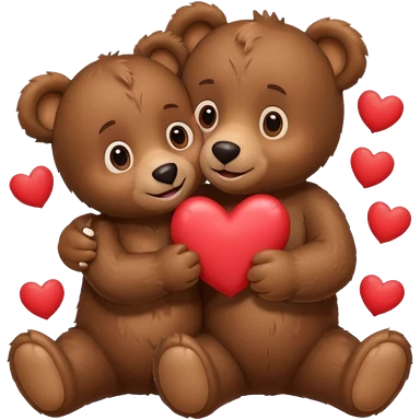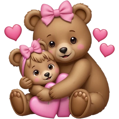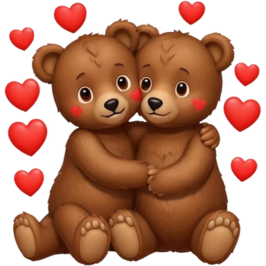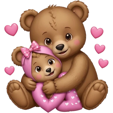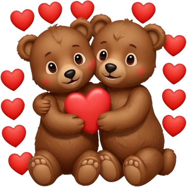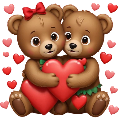 girl bear with bow and boy bear hugging, surrounded by hearts, playful and loving, cute emoji