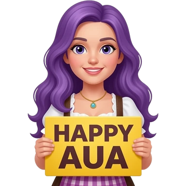 girl with long purple hair wearing a dirndl holding a HAPPY AUA sign emoji