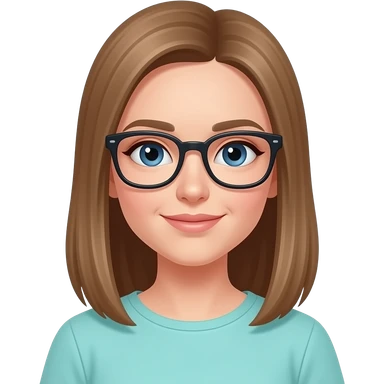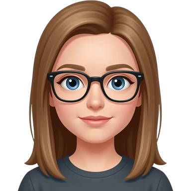 Girl with pale skin, sightly straight hair, dark blue eyes, light brown hair, back length hair, black glasses emoji