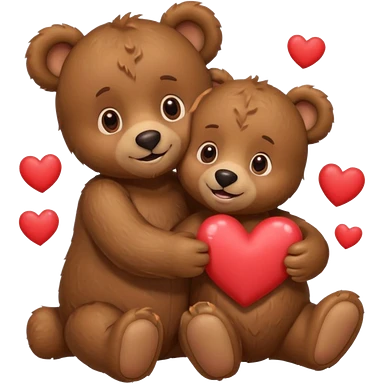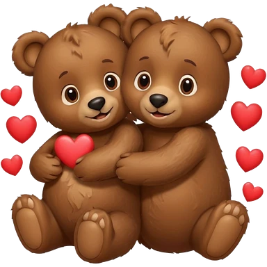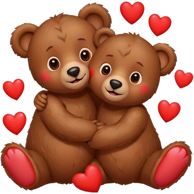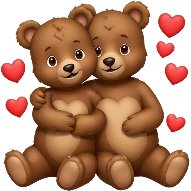 girl bear and boy bear hugging, surrounded by hearts, playful and loving, cute emoji