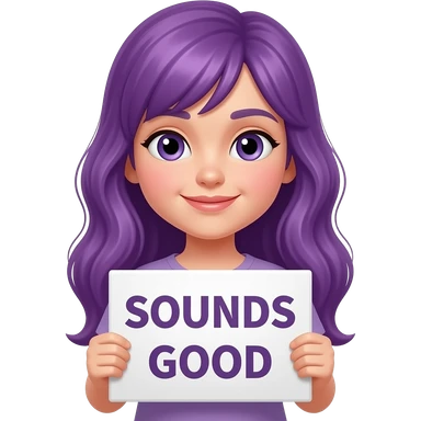 girl with long purple hair holding a SOUNDS GOOD sign emoji