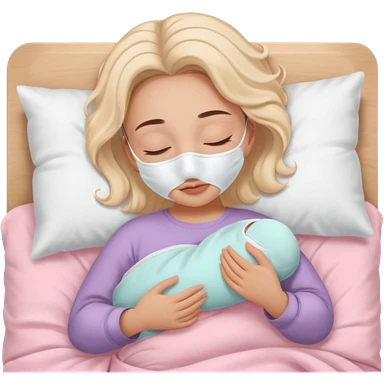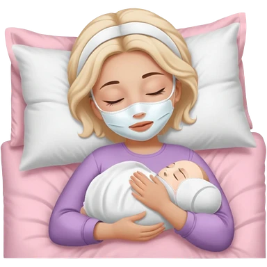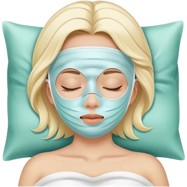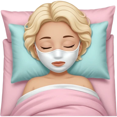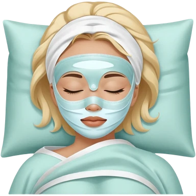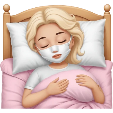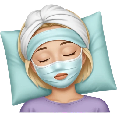 Girl sleeping peacefully with a white beauty face mask on, self care routine emoji