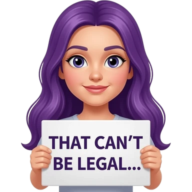 girl with long purple hair holding a THAT CAN'T BE LEGAL... sign emoji