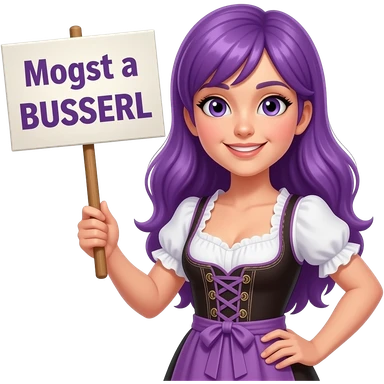 girl with long purple hair wearing a dirndl holding a Mogst a BUSSERL sign emoji