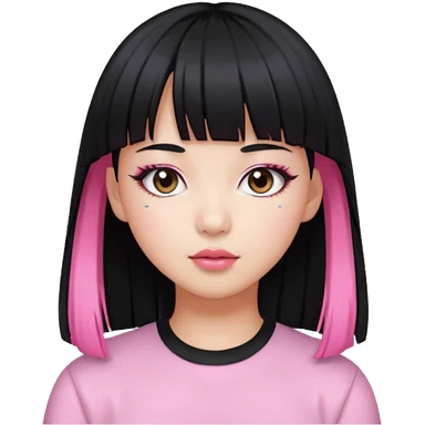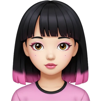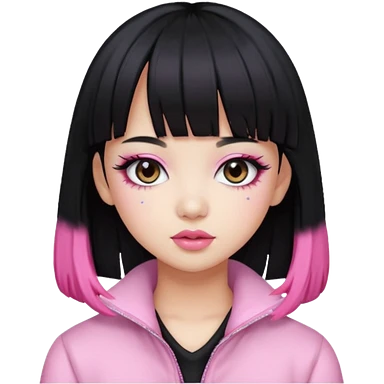 Girl with black hair but pink bangs and has a K-pop global pop star face emoji