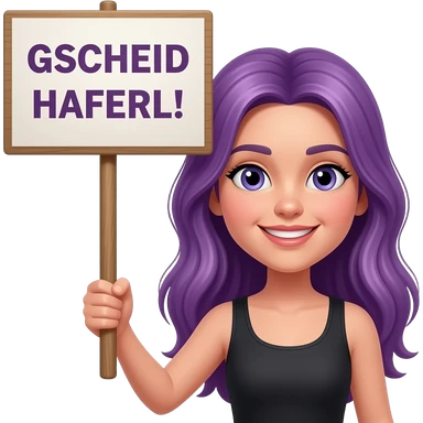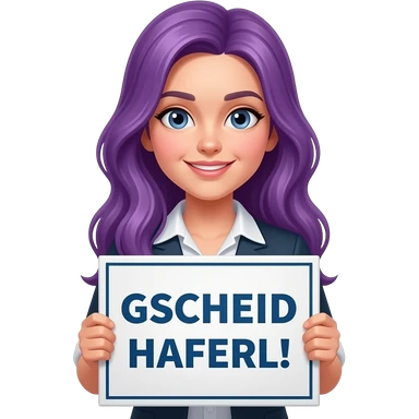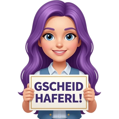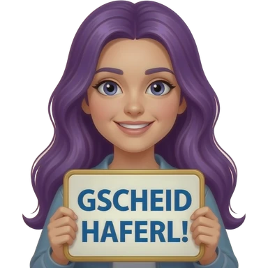 girl with long purple hair holding a GSCHEID HAFERL! sign emoji