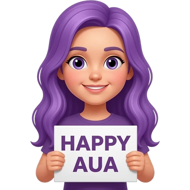 girl with long purple hair holding a HAPPY AUA sign emoji