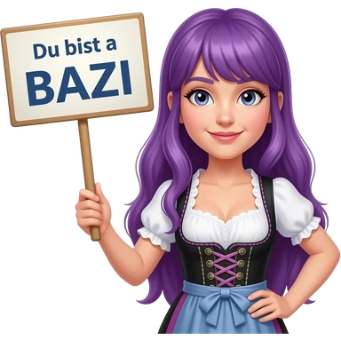 girl with long purple hair wearing a dirndl holding a Du bist a BAZI sign emoji