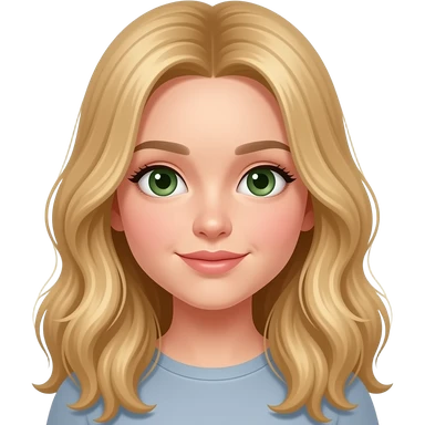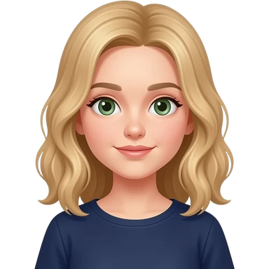 Girl with pale skin, sightly wavy hair, dark green eyes, blonde hair, back length hair, navy color top emoji