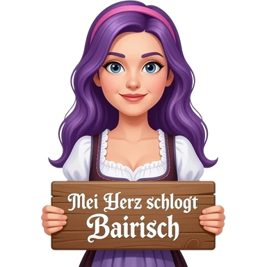 girl with long purple hair wearing a dirndl holding a Mei Herz schlogt BOARISCH sign emoji