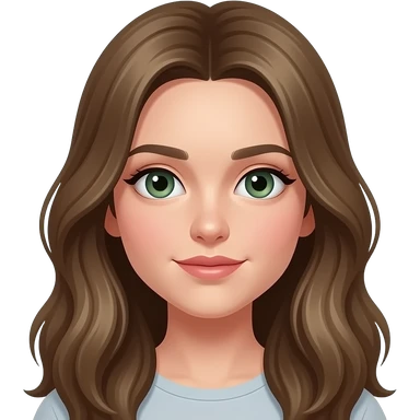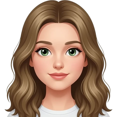 Girl with pale skin, slightly wavy hair, dark green eyes, dark blonde long hair emoji