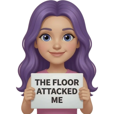 girl with long purple hair holding a THE FLOOR ATTACKED ME sign emoji