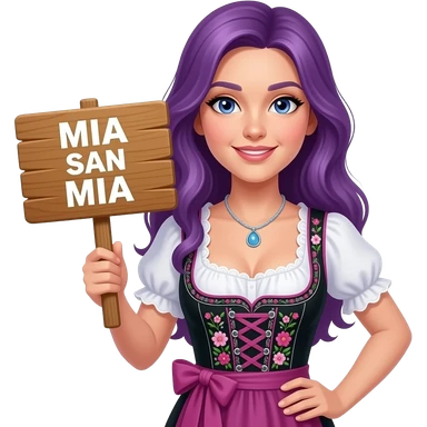 girl with long purple hair wearing a dirndl holding a MIA SAN MIA sign emoji
