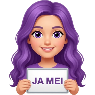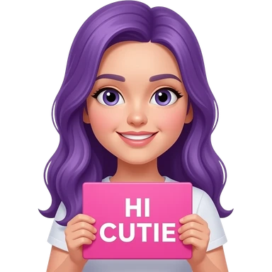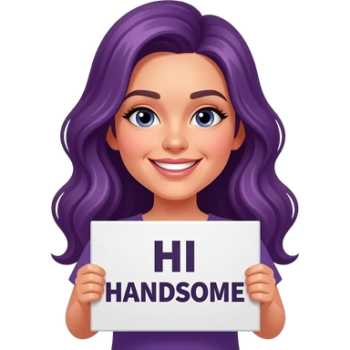 girl with long purple hair holding a HI HANDSOME sign emoji
