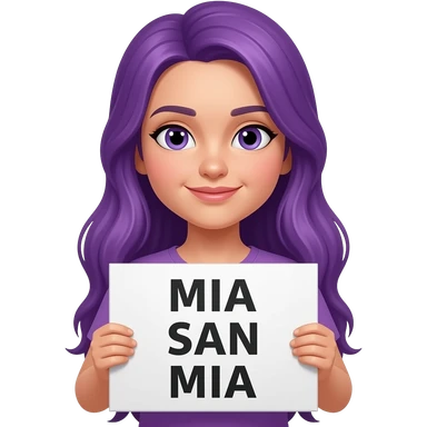 girl with long purple hair holding a MIA SAN MIA sign emoji