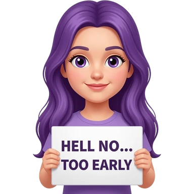 girl with long purple hair holding a HELL NO... too early sign emoji
