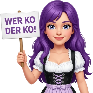 girl with long purple hair wearing a dirndl holding a WER KO DER KO! sign emoji
