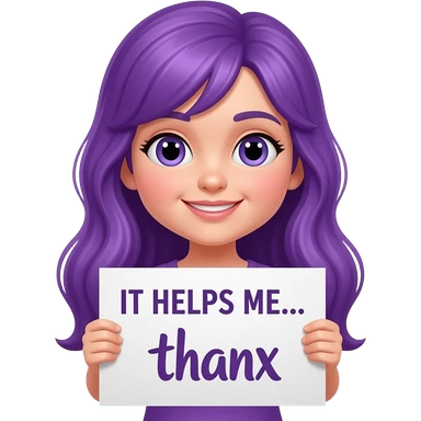 girl with long purple hair holding a IT HELPS ME.... thanx sign emoji