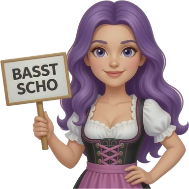 girl with long purple hair wearing a dirndl holding a BASST SCHO sign emoji
