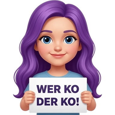girl with long purple hair holding a WER KO DER KO! sign emoji