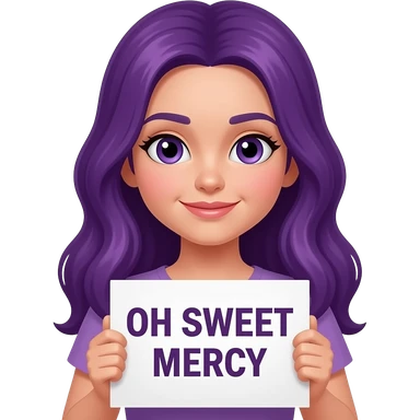 girl with long purple hair holding a OH SWEET MERCY sign emoji