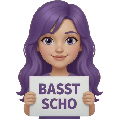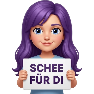girl with long purple hair holding a SCHEE FÜR DI sign emoji
