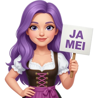 girl with long purple hair wearing a dirndl holding a JA MEI sign emoji