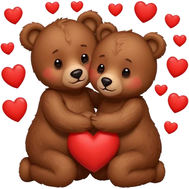 girl bear and boy bear hugging, surrounded by hearts, playful and loving emoji