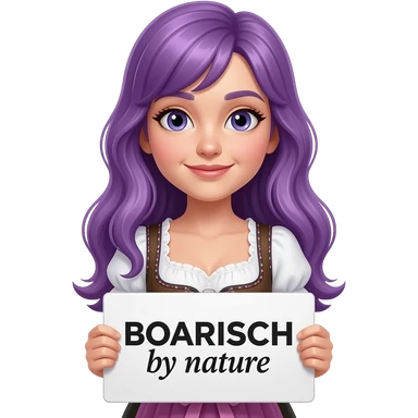girl with long purple hair wearing a dirndl holding a BOARISCH by nature sign emoji