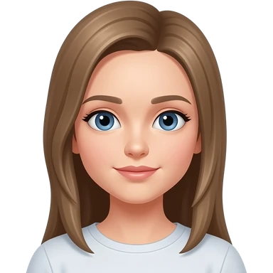 Girl with pale skin, sightly straight hair, dark blue eyes, light brown hair, back length hair emoji