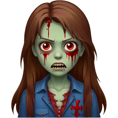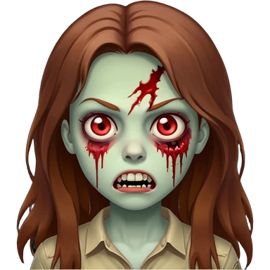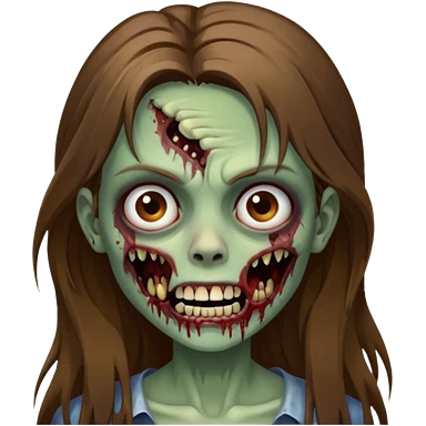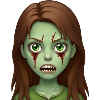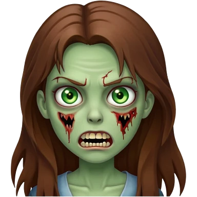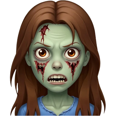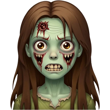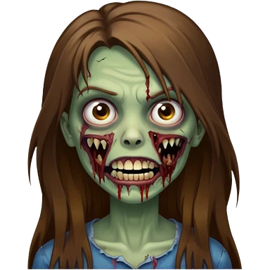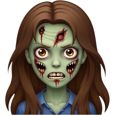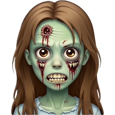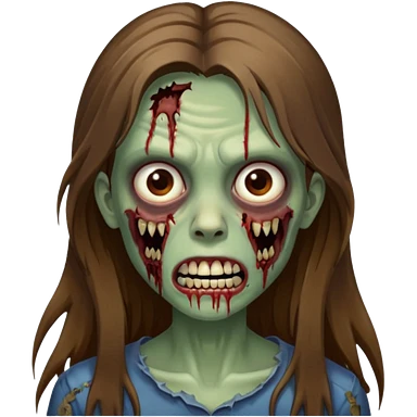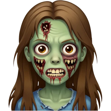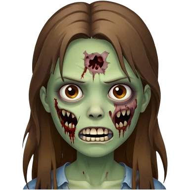 Girl zombie with brown long hair with teeth and serious face IOS style emoji