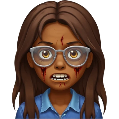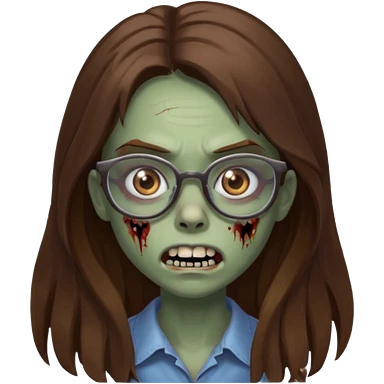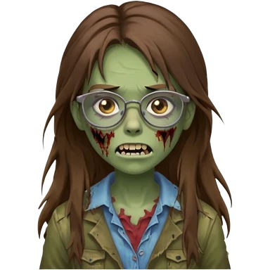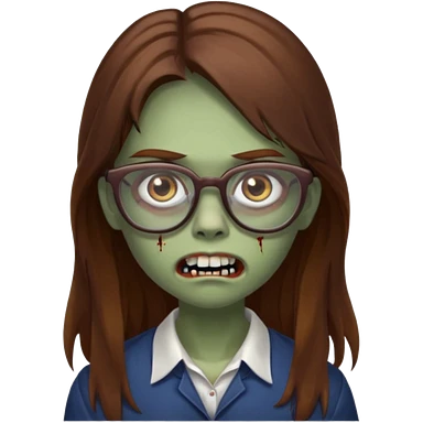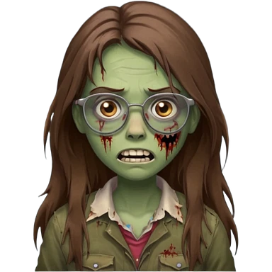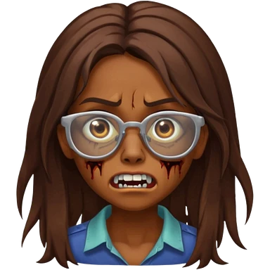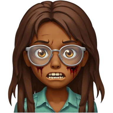 Girl zombie with brown long hair with teeth and serious face IOS style with glasses emoji