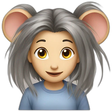 One white girl with straight reddish brown hair gossiping with a korean girl with long straight girl and a rat and mustache emoji