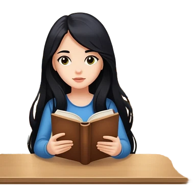 girl reading book, black eyes, Hispanic, grayish hair, wearing classes emoji