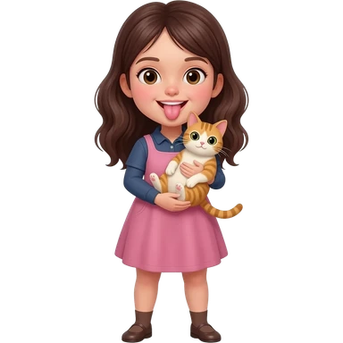 Girl showes her tongue. There is a cat in her arms emoji