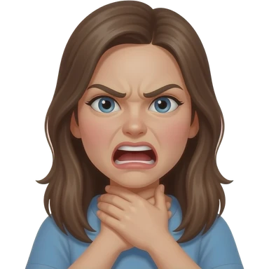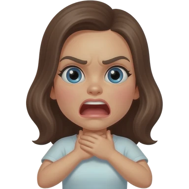 Girl choking herself with both hands, mad, mouth open expression emoji