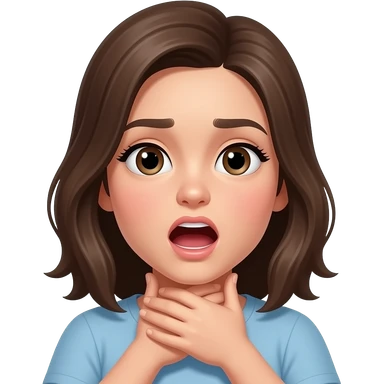 Girl choking herself with both hands,, mouth open expression emoji