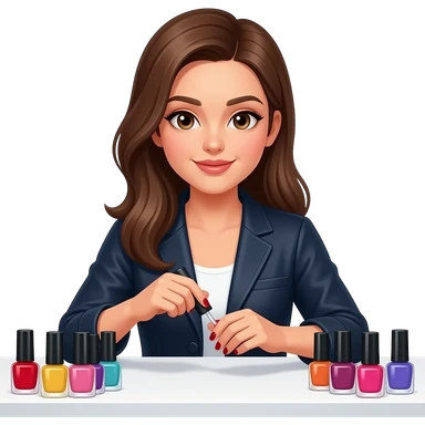 Girl with brown long hair working on clients nails set emoji