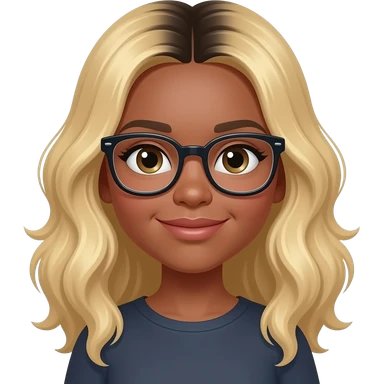 Girl with blonde hair with black roots, wavy, olive skin tone and glasses emoji